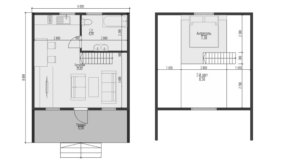 ✅ Габариты 6 х 8 - площадь 51,36 м²