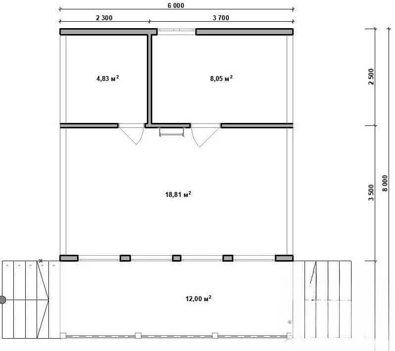 ;Отделка: Имитация бруса 130х18мм, сосна, сорт АВ или ГКЛ 12мм
