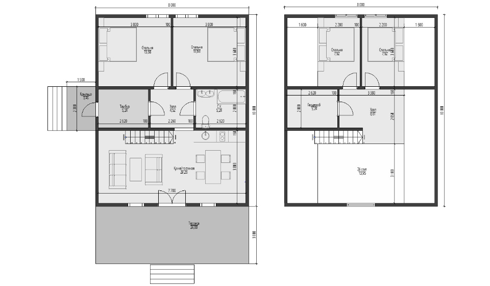 ;Отделка: Имитация бруса 130х18мм, сосна, сорт АВ или ГКЛ 12мм