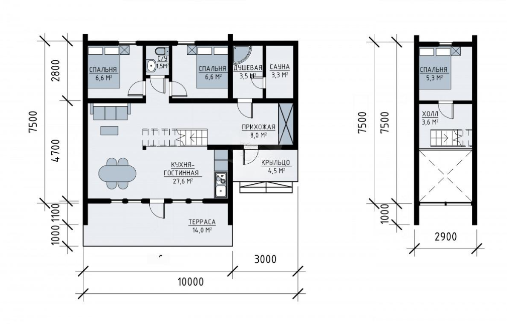 • Небольшие спальные комнаты и просторная зона кухни -гостиной, большое количество хозяйственных отделений, делают данный дом максимально удобным для провождения времени.